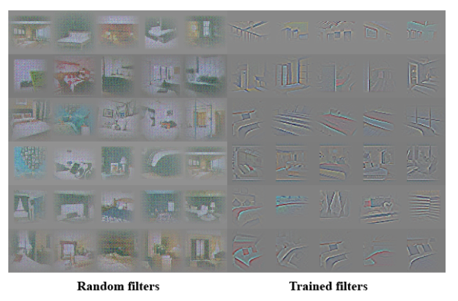 - random filter를 이용해서 의미 있는 feature들을 activate시키지 못하는 것을 보여줌으로써 trained filter 쪽이 제대로 나왔음을 보여준다.