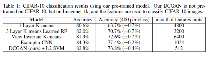 2) 학습완료된 discriminator를 사용해서 다른 unsupervised 알고리즘에 비해서, 이미지 classification 능력이 뛰어남을 보여주려함